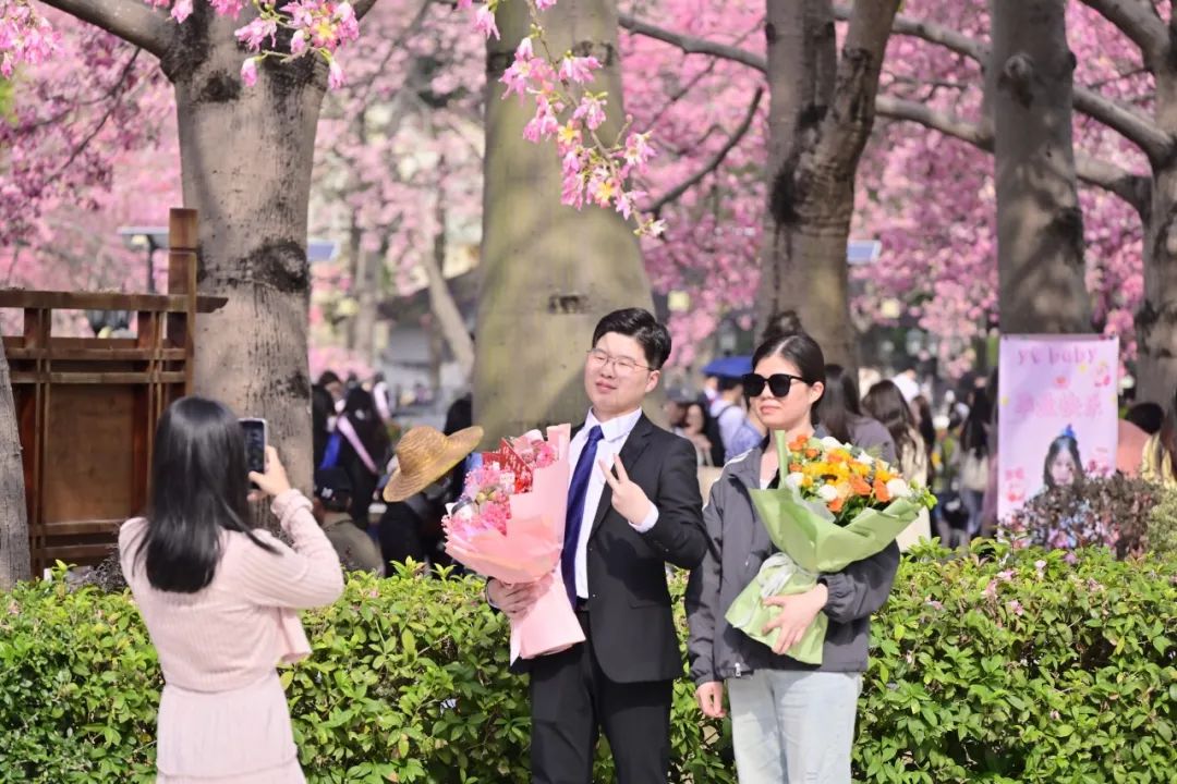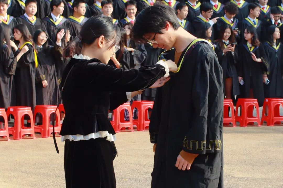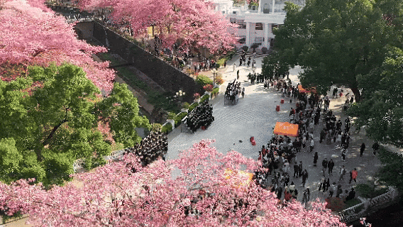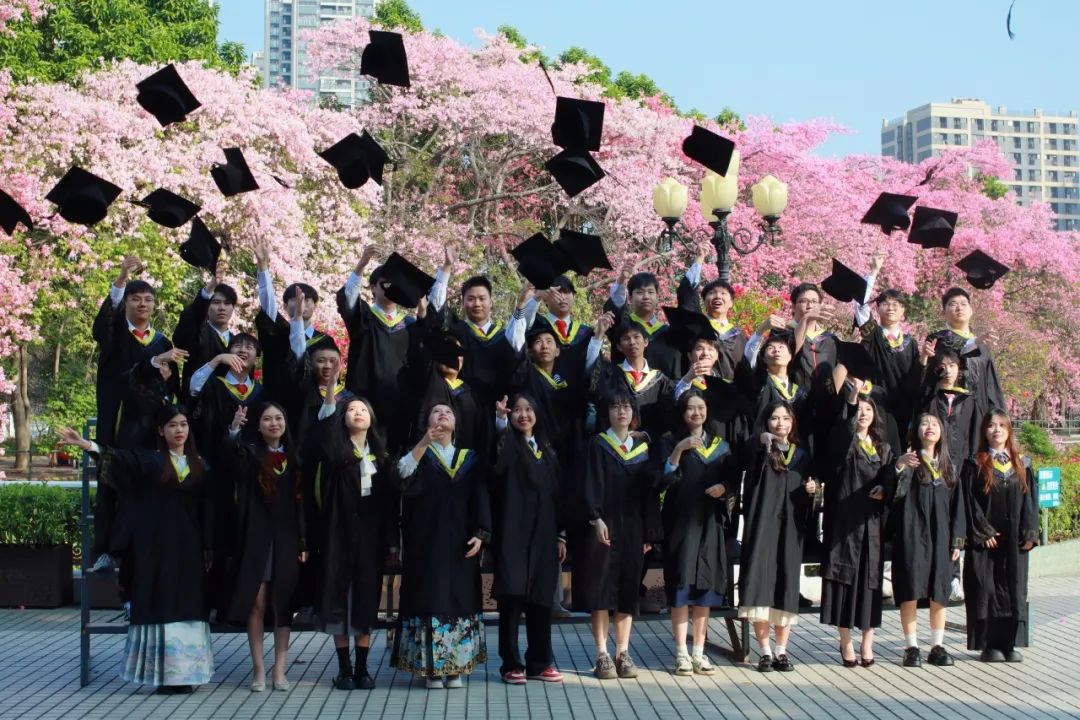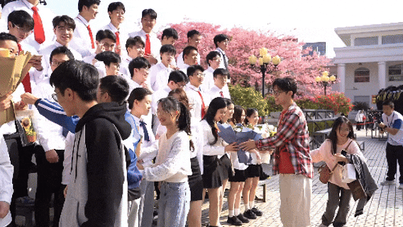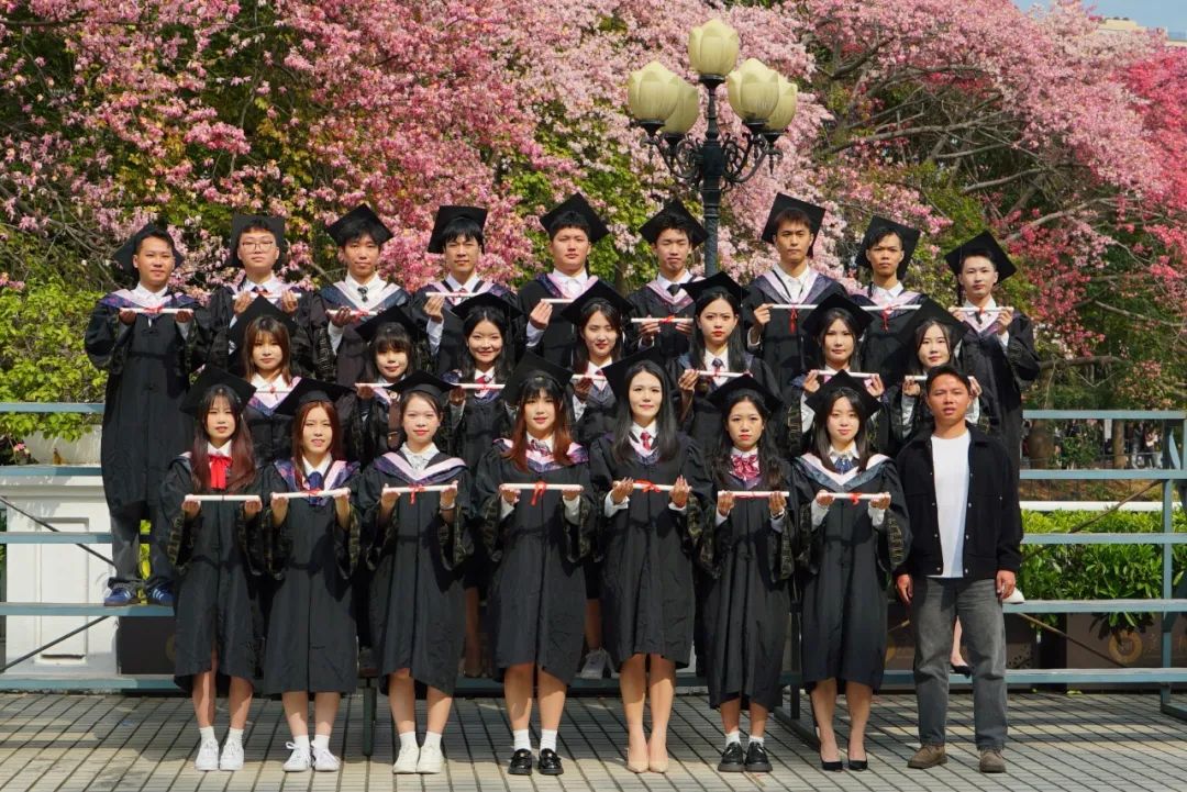 在“白宫”前,在弘桥上,在丝木棉下,毕业班的同学们身着学士服,头戴学士帽,手捧鲜花,三两好友轻松交谈、或与同学亲密留影。灿烂的阳光透过云层洒在每个人的脸上,为这特别的时刻增添了几分温暖和庄重。整个校园热闹有序,洋溢着青春的气息。