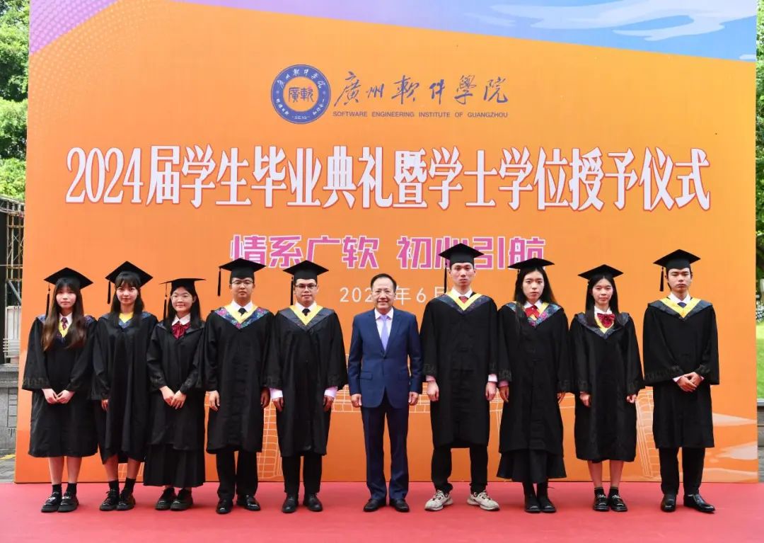 梁冠军董事长参加2024届学生毕业典礼暨学士学位授予仪式(图源:广软宣)