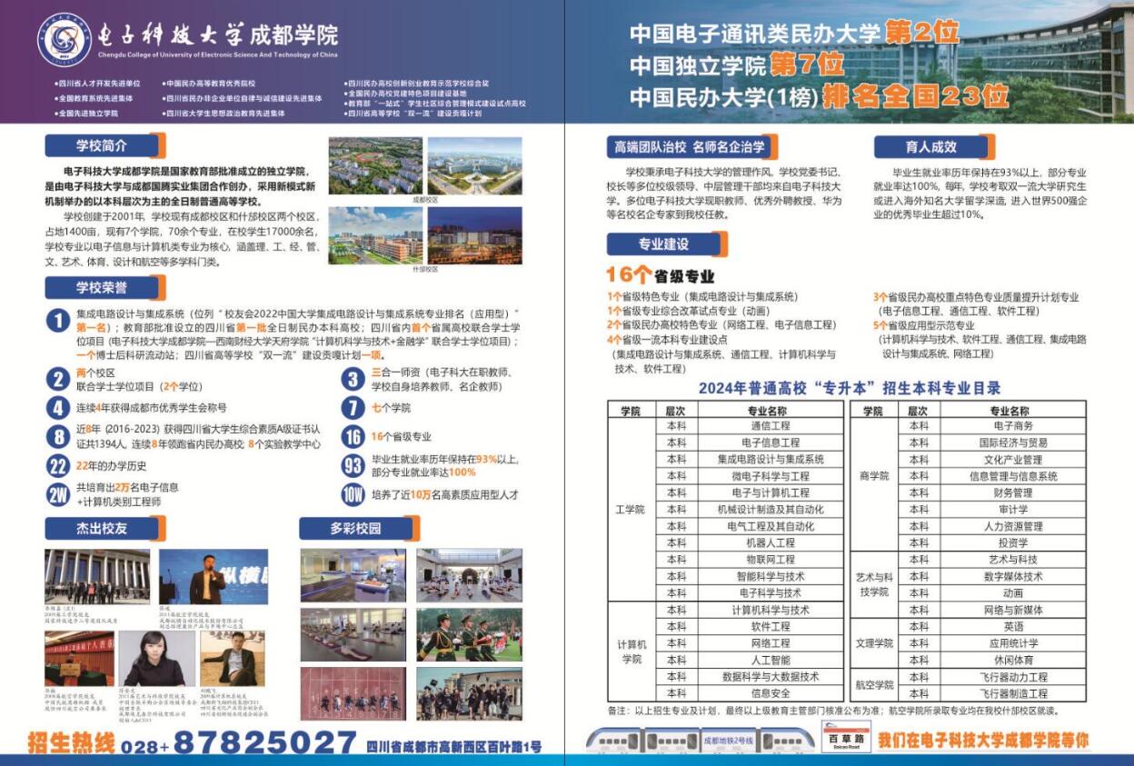电子科技大学成都学院2024年统招“专升本”招生简章