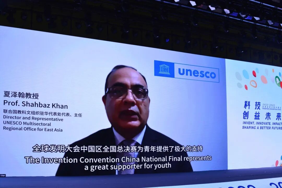 联合国教科文组织驻华代表处代表主任夏泽翰发来寄语视频,并表示:“全球发明大会中国区全国总决赛为青年提供了极大的支持”。