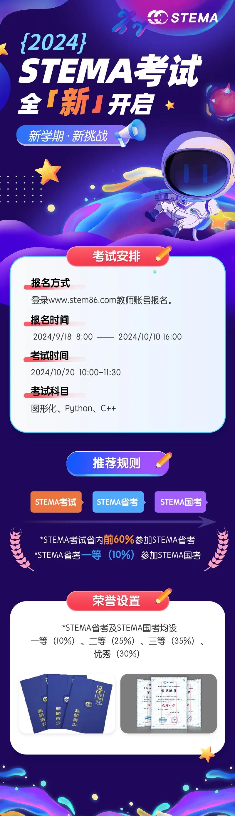 STEMA考试致力于综合评价学生的STEM水平,对学生的科技素养、计算思维和编程能力进行客观科学的