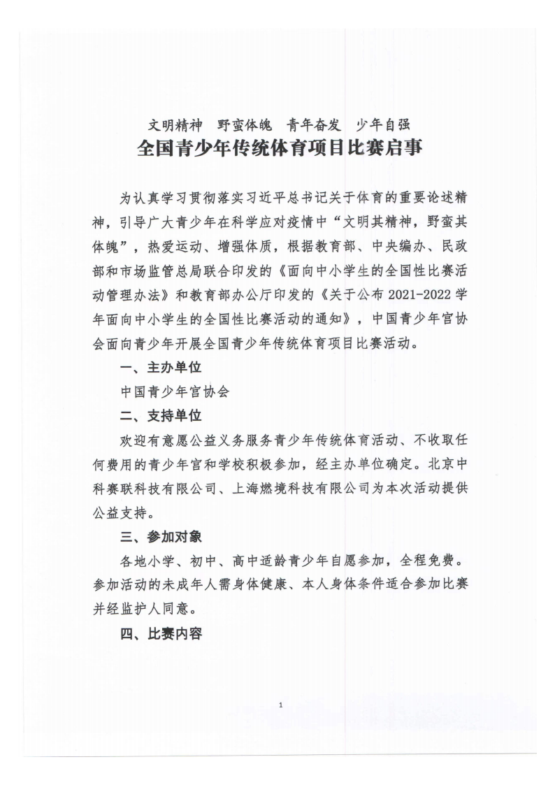 全国青少年传统体育项目比赛启事