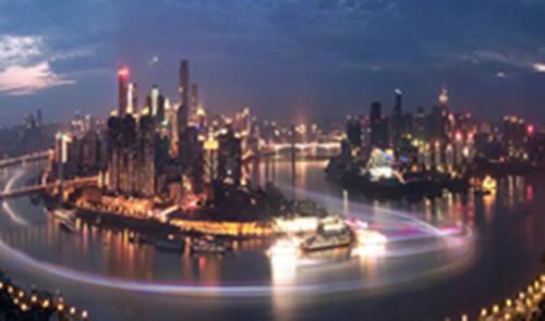 自鹅项岭俯瞰环抱重庆半岛的两江,华灯初上,夜色靡靡。身心浸泡在这了无边际的立体空间,头顶上是呼啸而过的地铁,在鳞次栉比的大厦中穿梭,带起裙角微风缱绻。