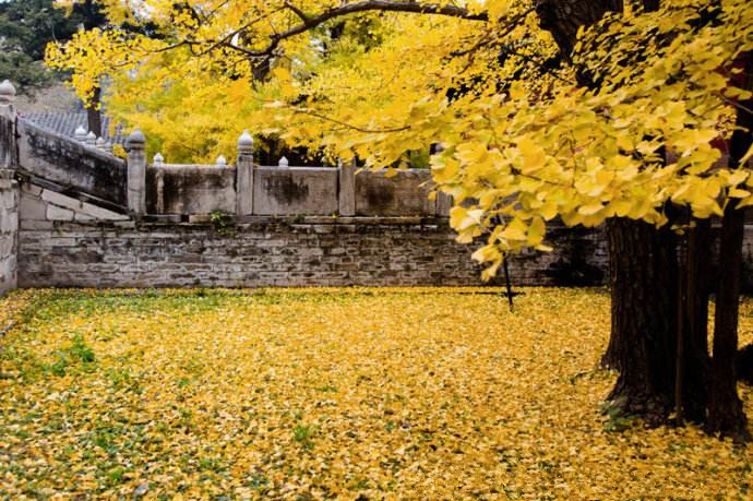 深秋的落叶积得很厚,