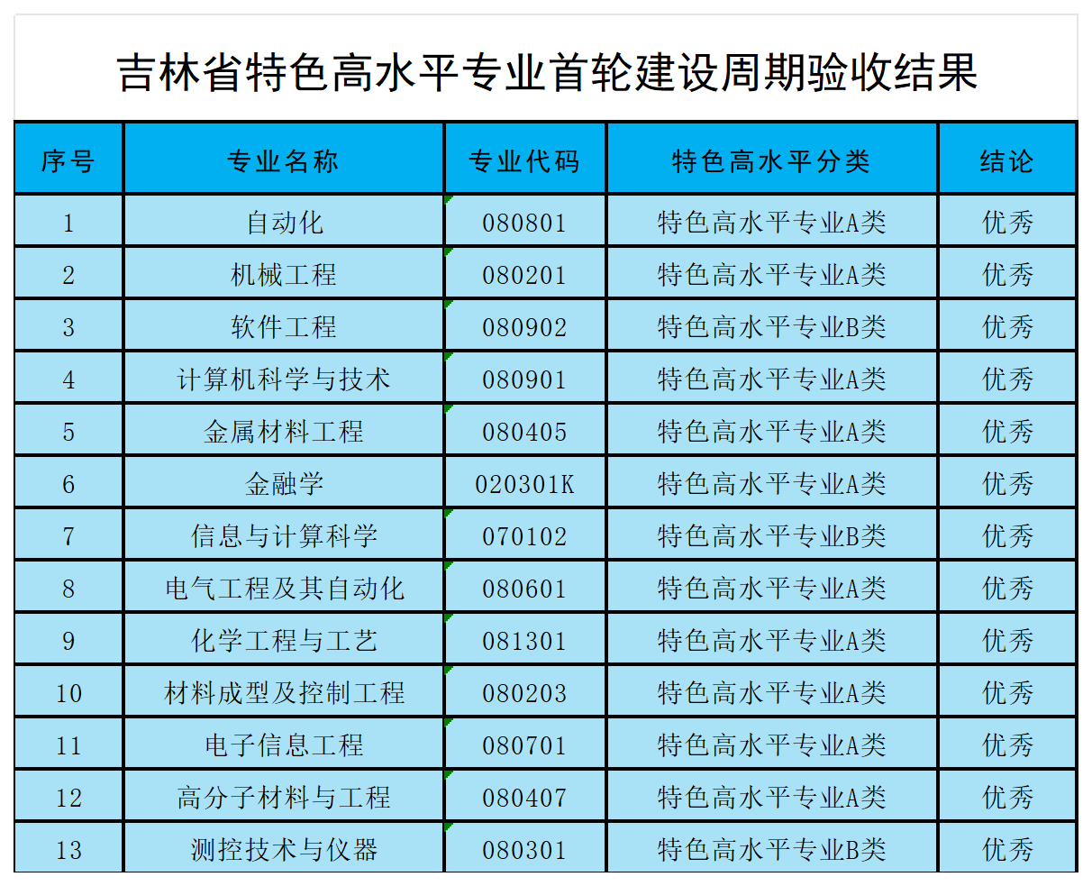 12月10日,吉林省教育厅公布了吉林省特色高水平学科专业首轮建设周期验收结果,我校13个本科专业顺利通过省级验收,验收结论均为“优秀”。