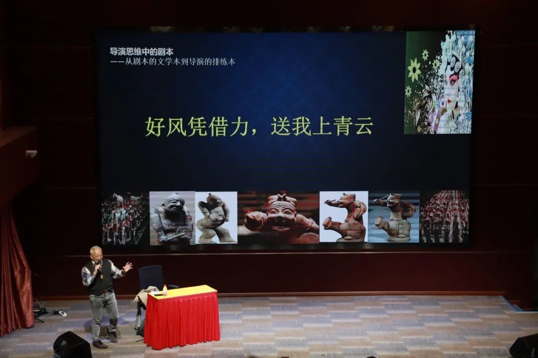 卢浩老师首先谈起个人对舞台的认识,提出舞台的独特性优选是作品出众的不二法宝,即人无我有、人有我优、人优我特;演员出身的卢老师给大家播放了他登上春晚的戏曲绝活《打柜出箱》,在这出短小的戏曲表演中,他创造了“三跌四出”高难度表演作为塑造人物的手段,生动形象地表现出主角饱经摧残将近疯癫的痛苦心态与死而复生时恍惚迷离的神情举止。正是这种首创性的“人优我特”被誉为“中国戏曲一绝”,至今仍是中国戏曲绝活中的经典。