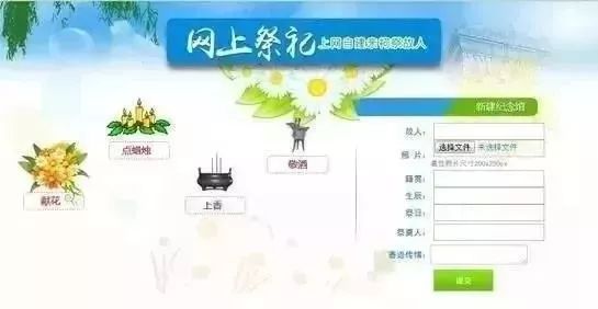 逝者家属在相关网站上为逝者注册一块虚拟“墓碑”,并附其生平简介等相关信息。输入祭扫人的名字,选择鲜花、花烛或留言等形式便可寄托思念。