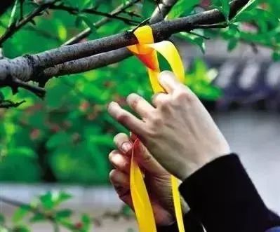 黄丝带带有哀悼、思念、祈福、希望、盼望的含义,用系挂“黄丝带”的方式为已故亲人祈祷,是一种文明、低碳、环保、新颖的祭祀方式。