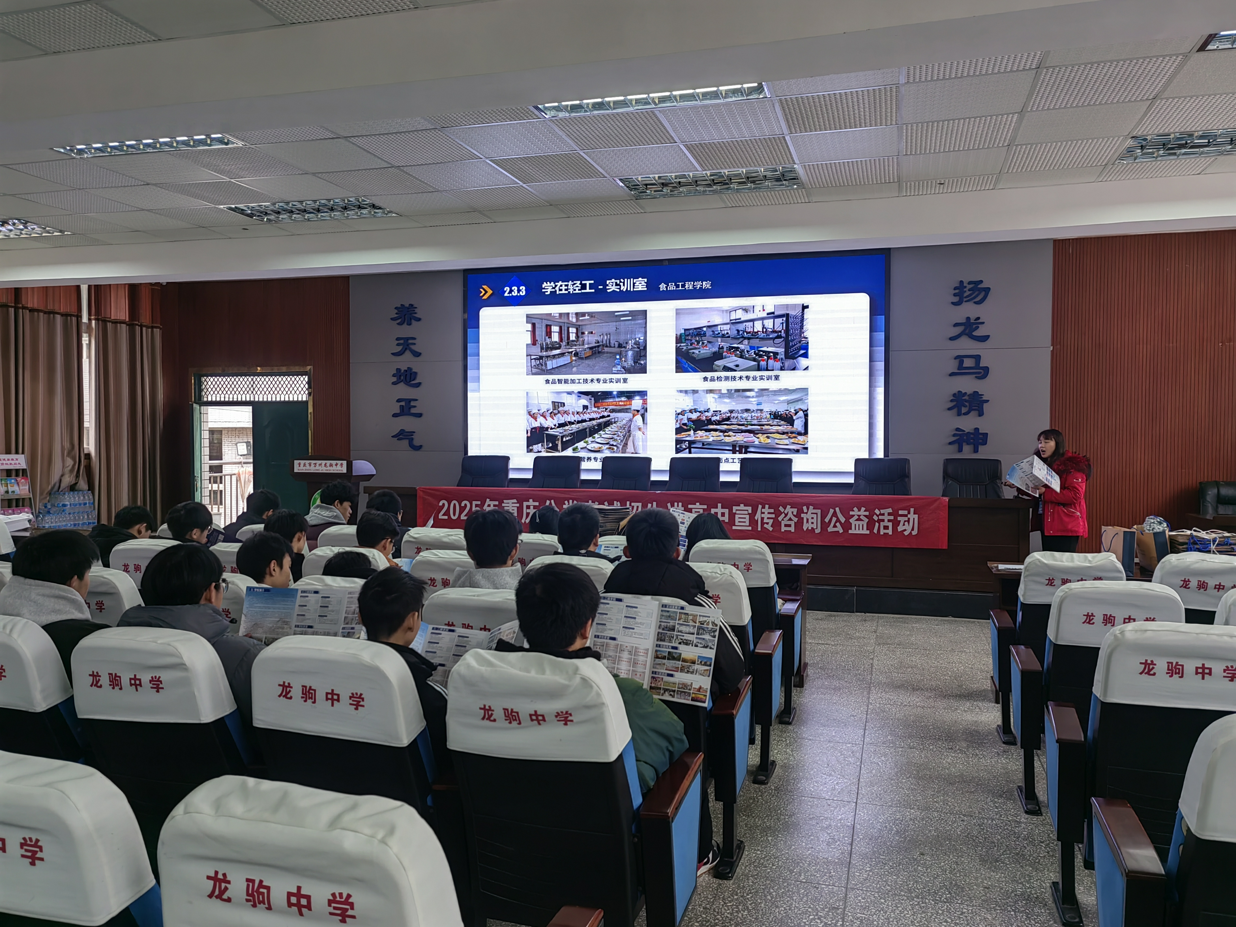 近日,重庆轻工职业学院招生组赴重庆各区县高中展开了咨询公益宣讲活动。活动正在如火如荼地进行中,招生处教师面向各区县的高中学生详细解读了重庆轻工职业学院的基本情况,展示了学校的办学模式和特色优势,鼓励学生积极报考我校。宣讲现场氛围活跃,活动中同学们踊跃提问、认真聆听。