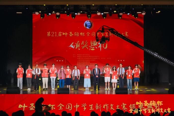 2024年7月28日,第21届叶圣陶杯全国中学生新作文大赛颁奖典礼在江苏省盐城市草房子景区隆重举行。白烨、吴思敬、曹文轩、顾之川、陈福 民、贺绍俊、邵燕君、叶小沫、叶永和、王世龙、李飞、马兵、孙道功、蒋成峰、尤立增、桑哲等文学界、教育界、新闻出版界的专家和中共盐城市盐都区委员会、 盐都区人民政府、盐都区教育局、盐都区文化广电和旅游局、江苏大纵湖文旅集团等支持单位的领导出席,获奖师生代表近四百人参加了颁奖活动。