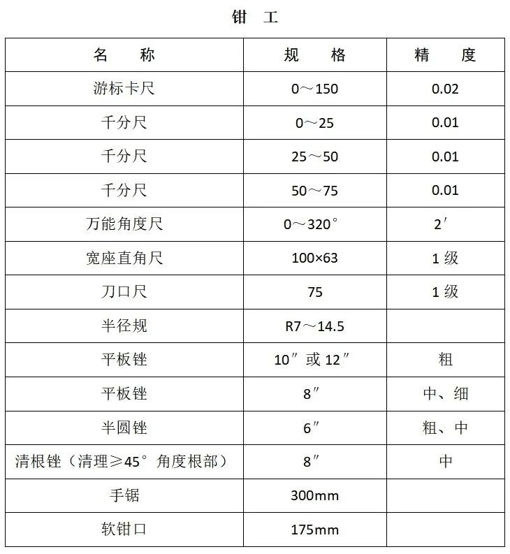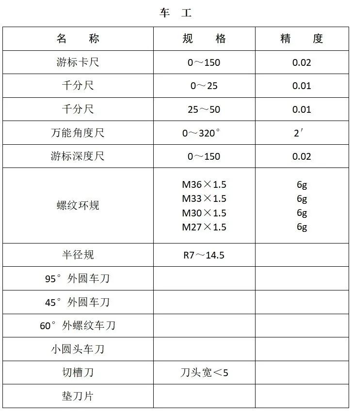 附表:机械类考生自备工量刃具