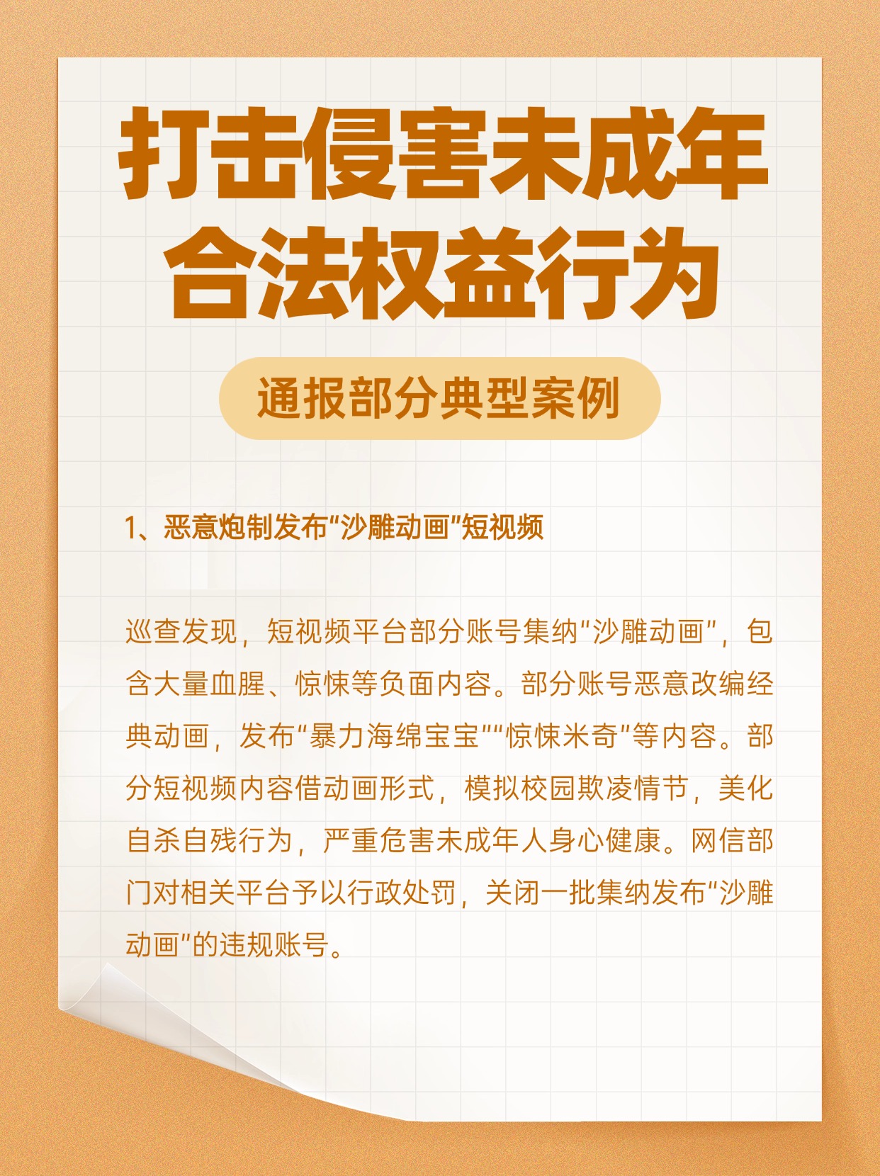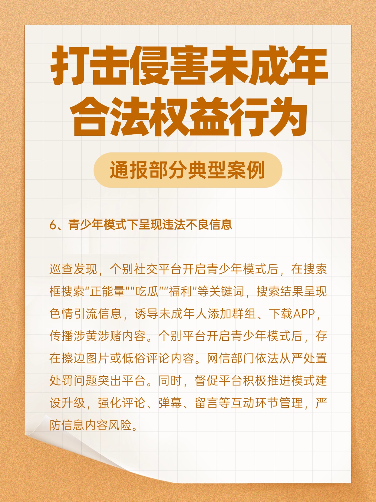 2024年是《未成年人网络保护条例》的实施之年,网信部门高度重视未成年人网络保护工作,聚焦可能影响未成年人身心健康的各类新问题新情况,重拳出击。一起了解部分典型案例!