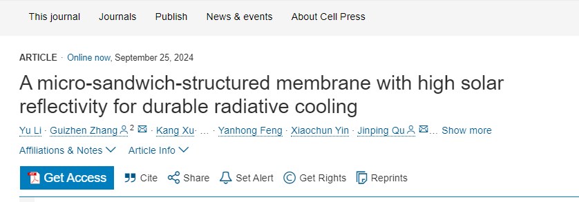 “A micro-sandwich-structured membrane with high solar reflectivity for durable radiative cooling”