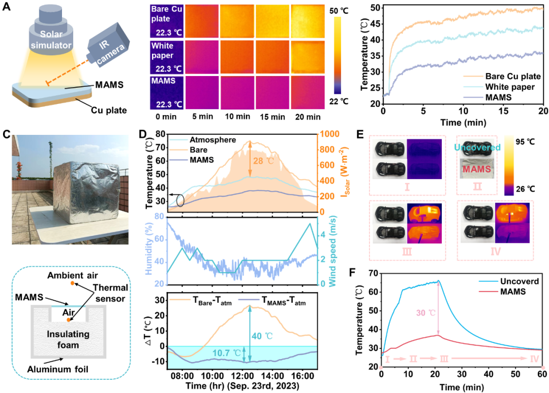 具有微三明治结构的UHMWPE基多孔膜(MAMS)的实际降温性能。