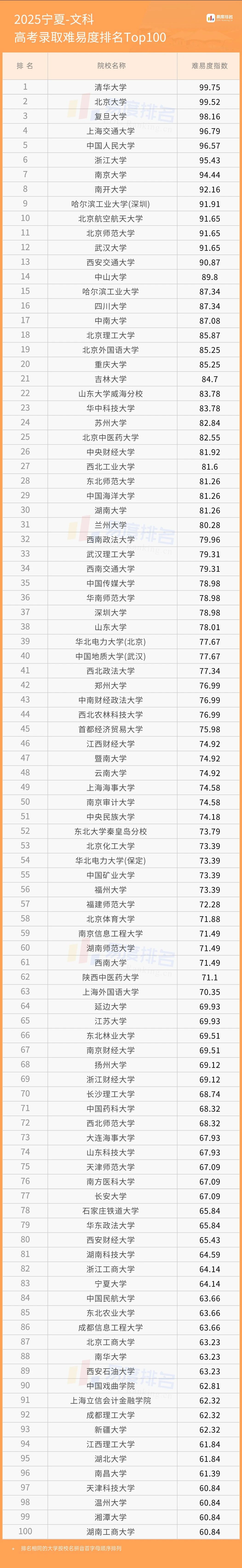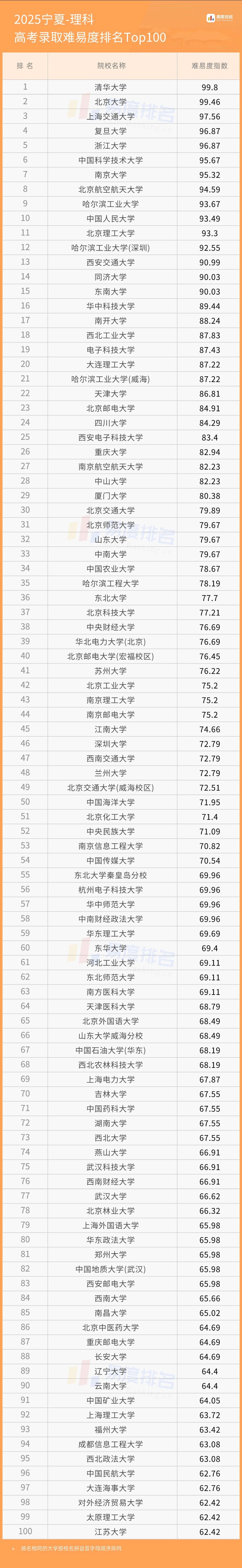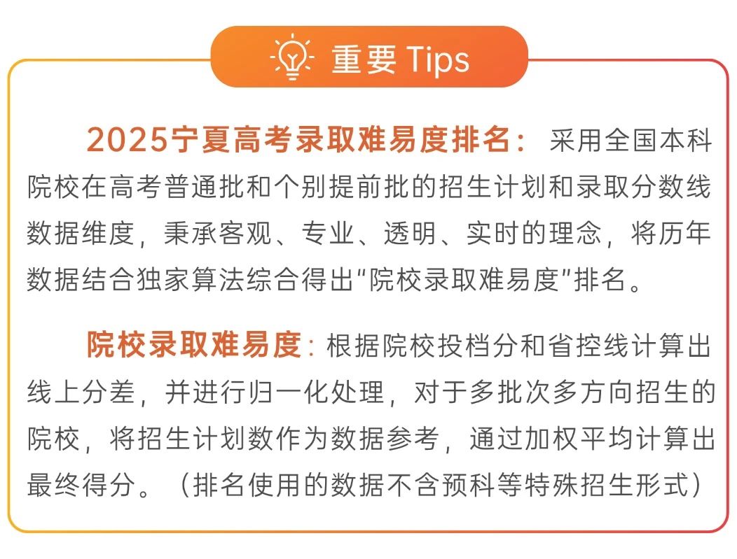 本期将公布“2025宁夏高考录取难易度排名”前100位。(具体排名方式见文末)