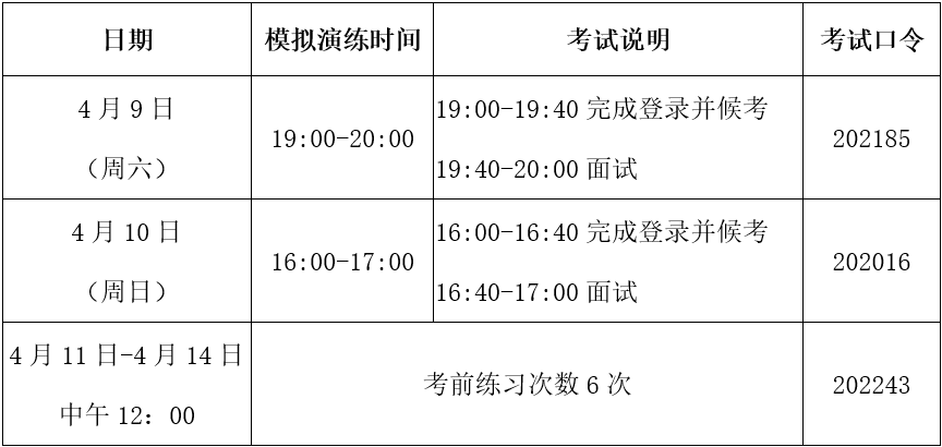 2.模拟演练所有步骤与正式考试相同,供考生熟悉考试流程及系统相关功能。模拟演练试题内容与正式考试无关。