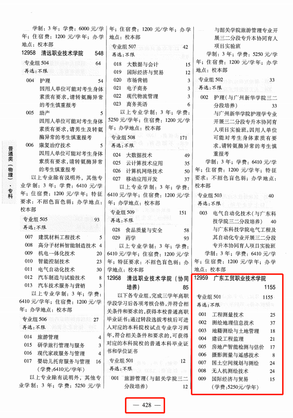 1、普通类物理版→第428-430页;专业组代码→501、505、507、508、509;