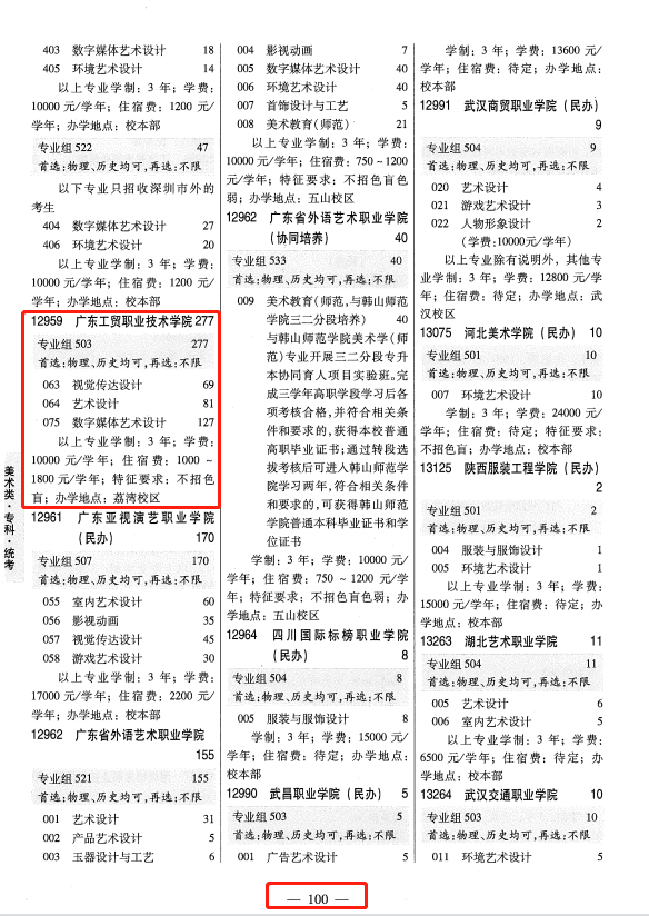 3、体育艺术版→第100页;专业组代码→503;