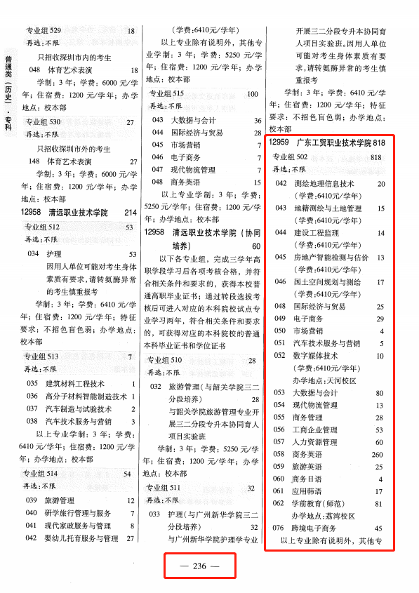 2、普通类历史版→第236-237页;专业组代码→502、504、506;