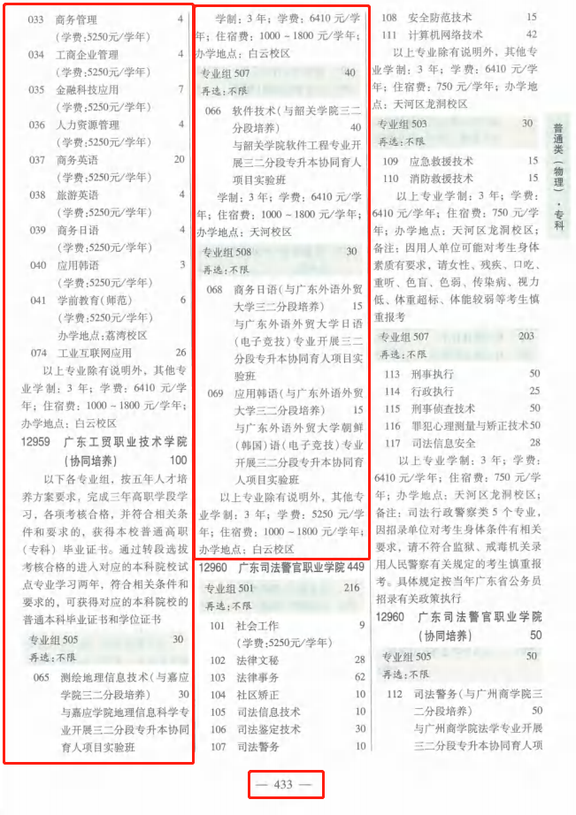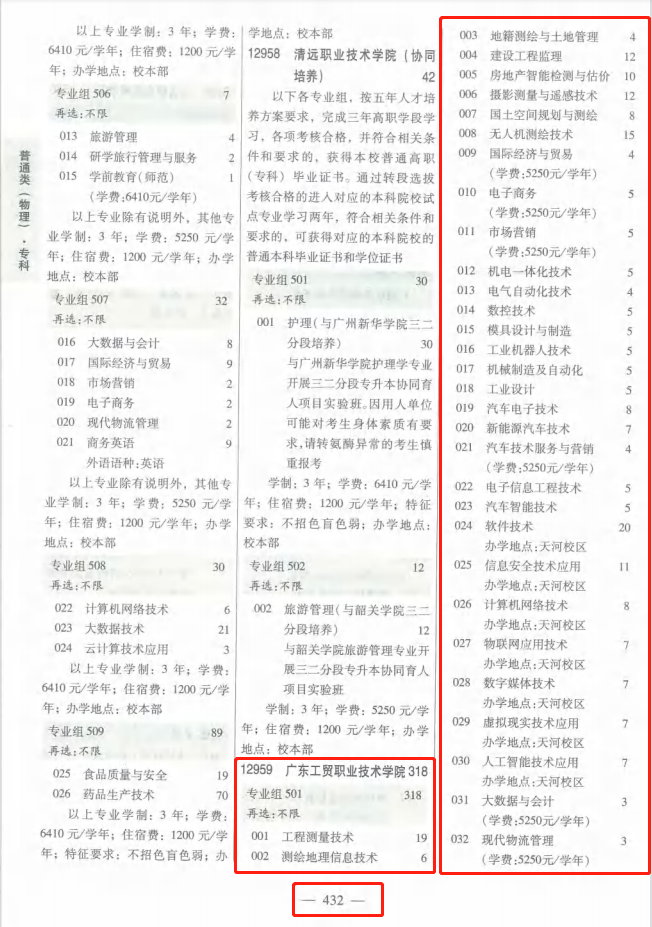 1、普通类物理版→第432-433页;专业组代码→501、505、507、508;