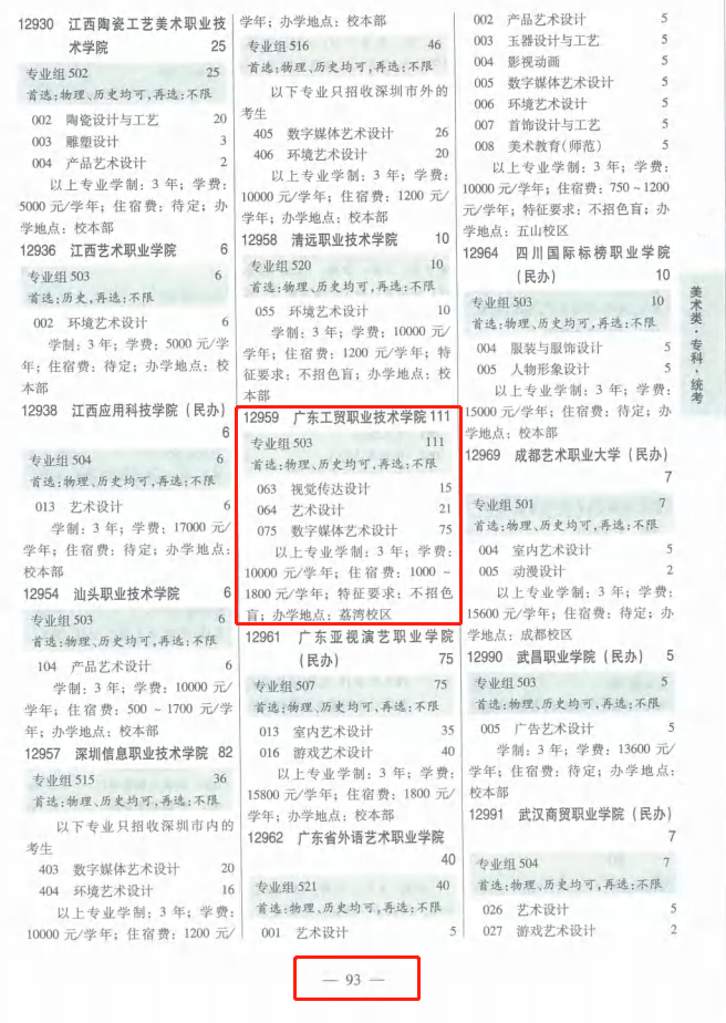3、体育艺术版→第93页;专业组代码→503;