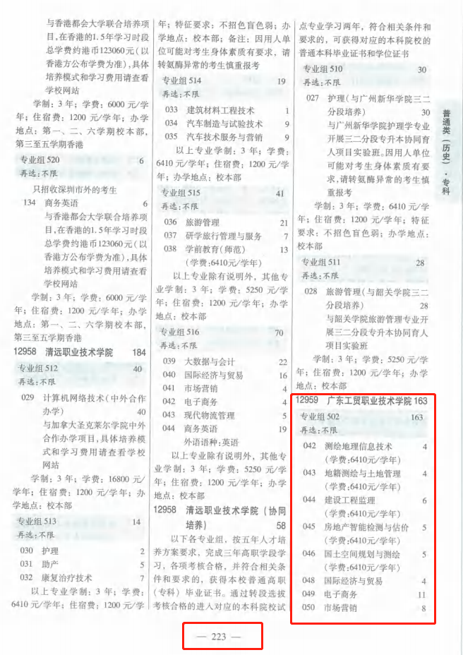 2、普通类历史版→第223-224页;专业组代码→502、504、506;