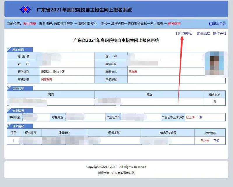 我校自主招生准考证全部通过广东省自主招生报名系统网上直接打印(https://www.eeagd.edu.cn/gzks)。报考材料审核通过,并缴费成功获得考试资格后方可打印。