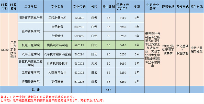 1.广东省2021年高职自主招生(含高职专业试点班招生)院校专业列表