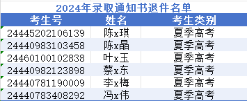 请以下同学看到本推文信息后尽快与我们联系。从即日起到开学报到9月21日(龙洞校区、天平架校区的专业为10月9日)前均可联系我校招生与就业指导中心补寄录取通知书。