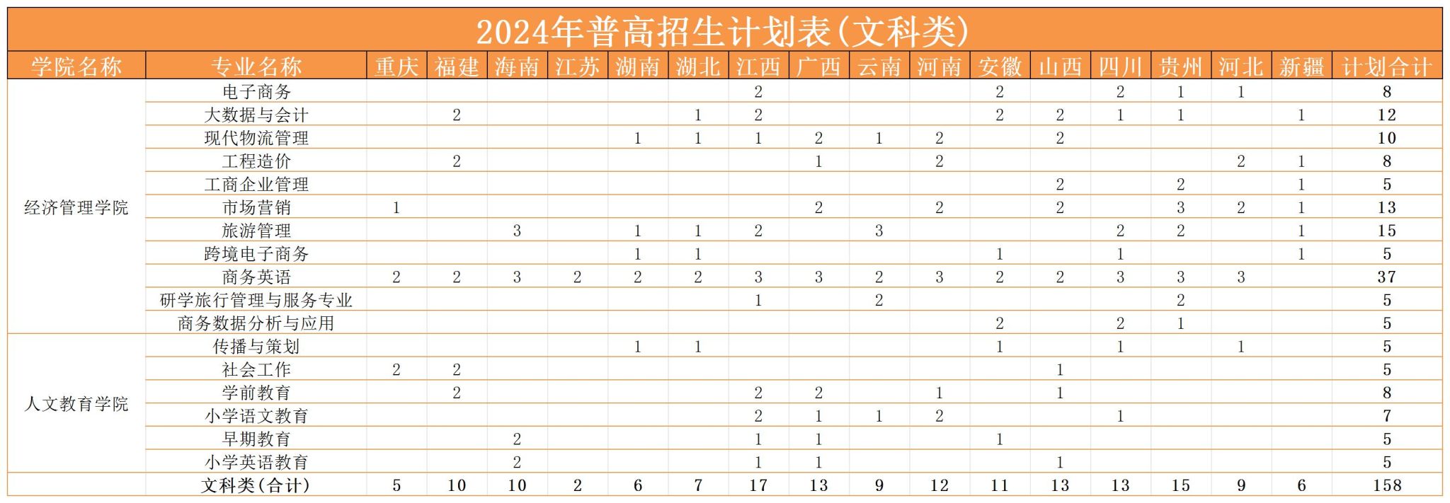 江门职业技术学院2024年夏季高考外省普高招生计划
