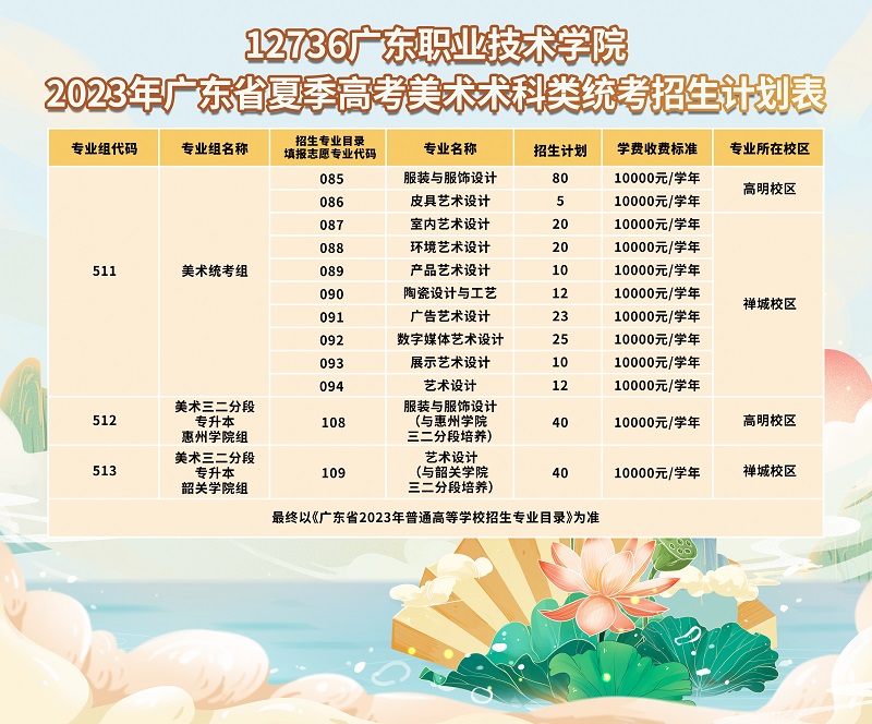 (三)广东省专科批次美术术科类统考3个专业组297个招生计划