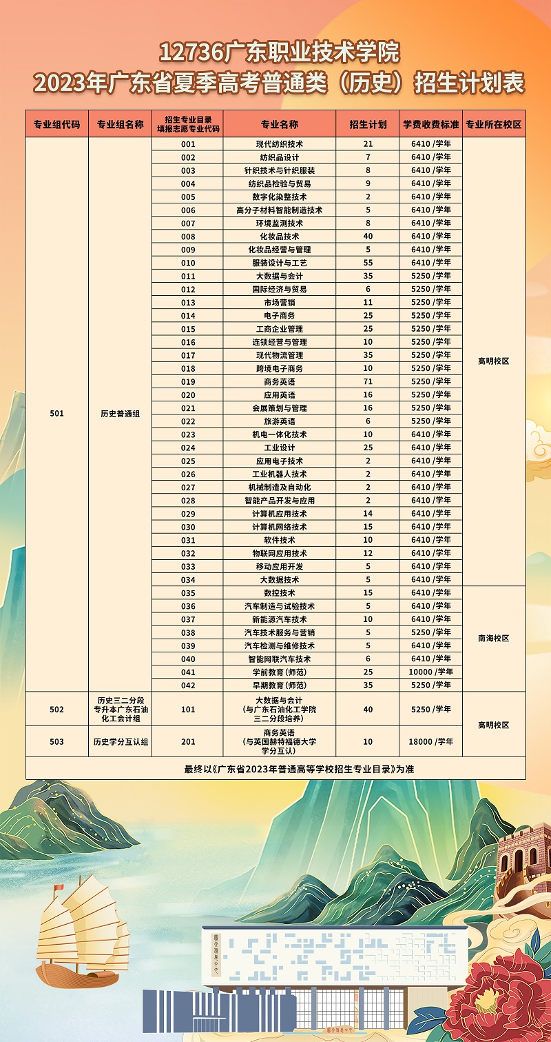 (一)广东省专科批次普通类(历史)3个专业组686个招生计划