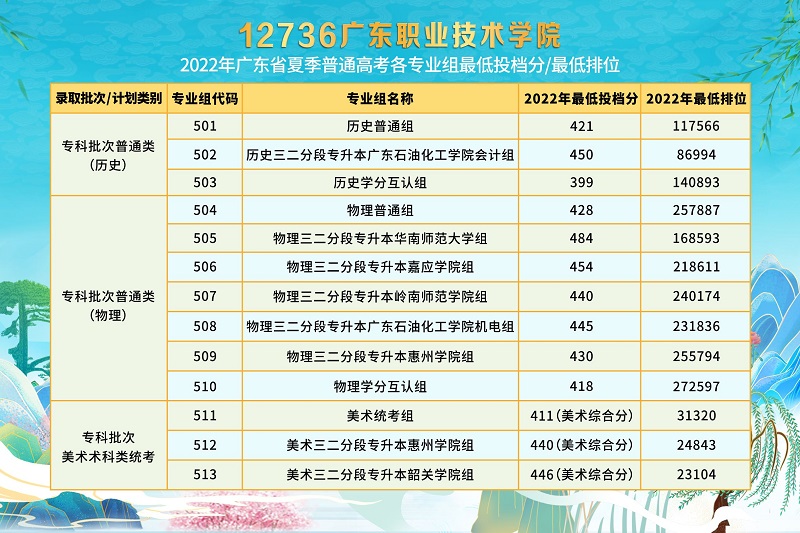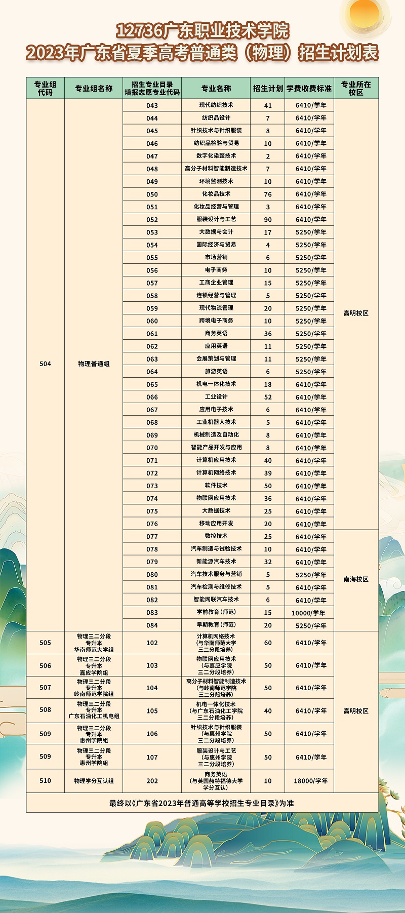 (二)广东省专科批次普通类(物理)7个专业组1140个招生计划