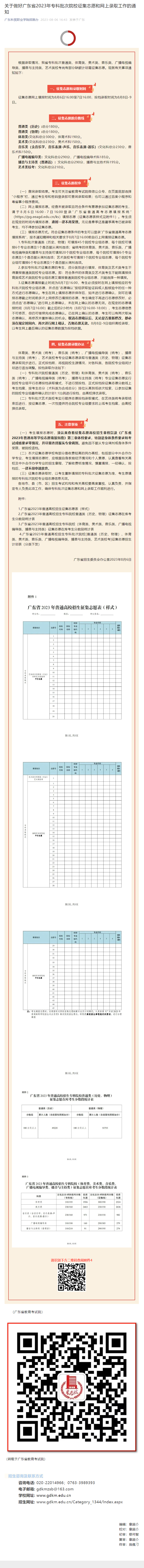 关于做好广东省2023年专科批次院校征集志愿和网上录取工作的通知
