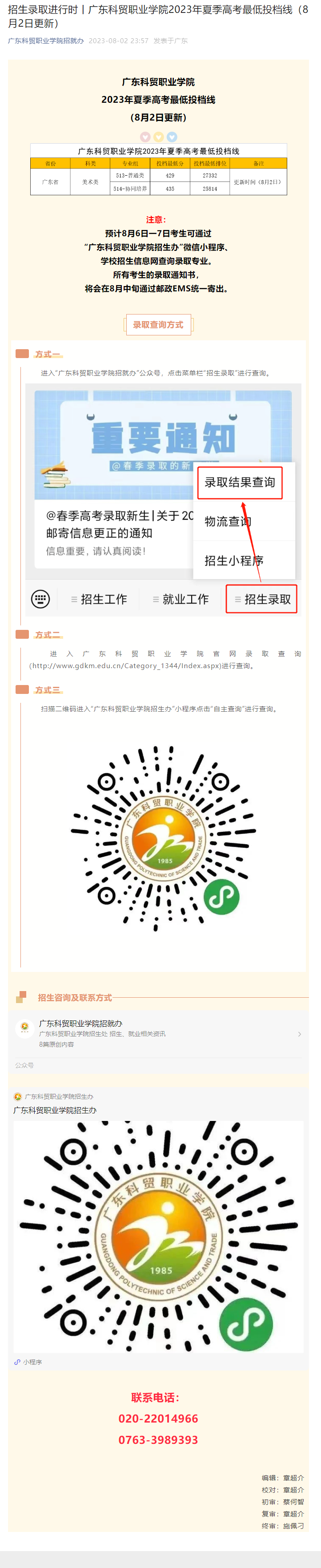 招生录取进行时丨广东科贸职业学院2023年夏季高考最低投档线(8月2日更新)