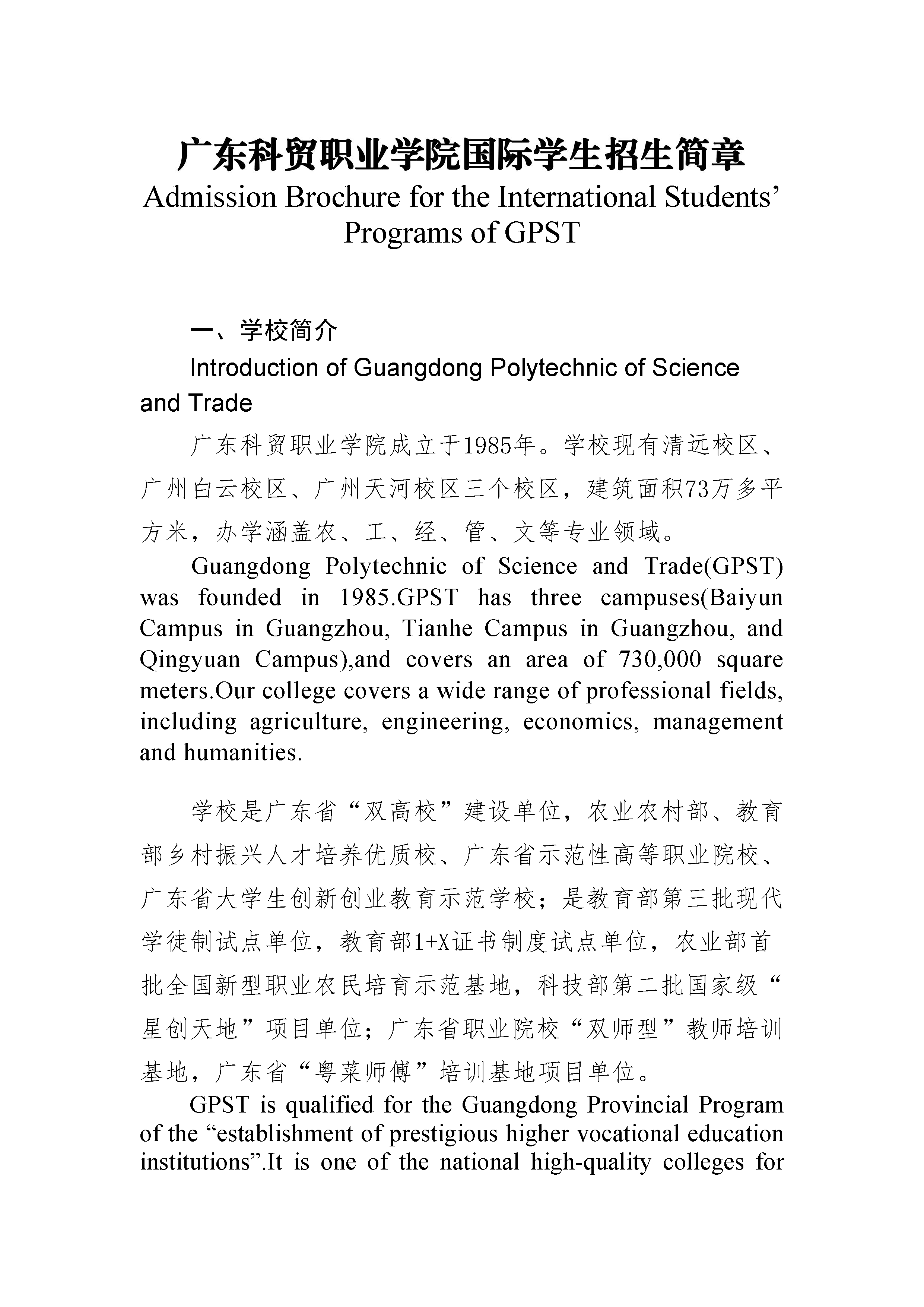 广东科贸职业学院国际学生招生简章