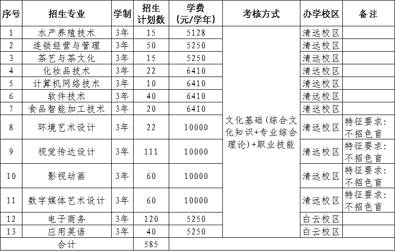 (二)普通高职自主招收中职应往届毕业生585人。详见下表。