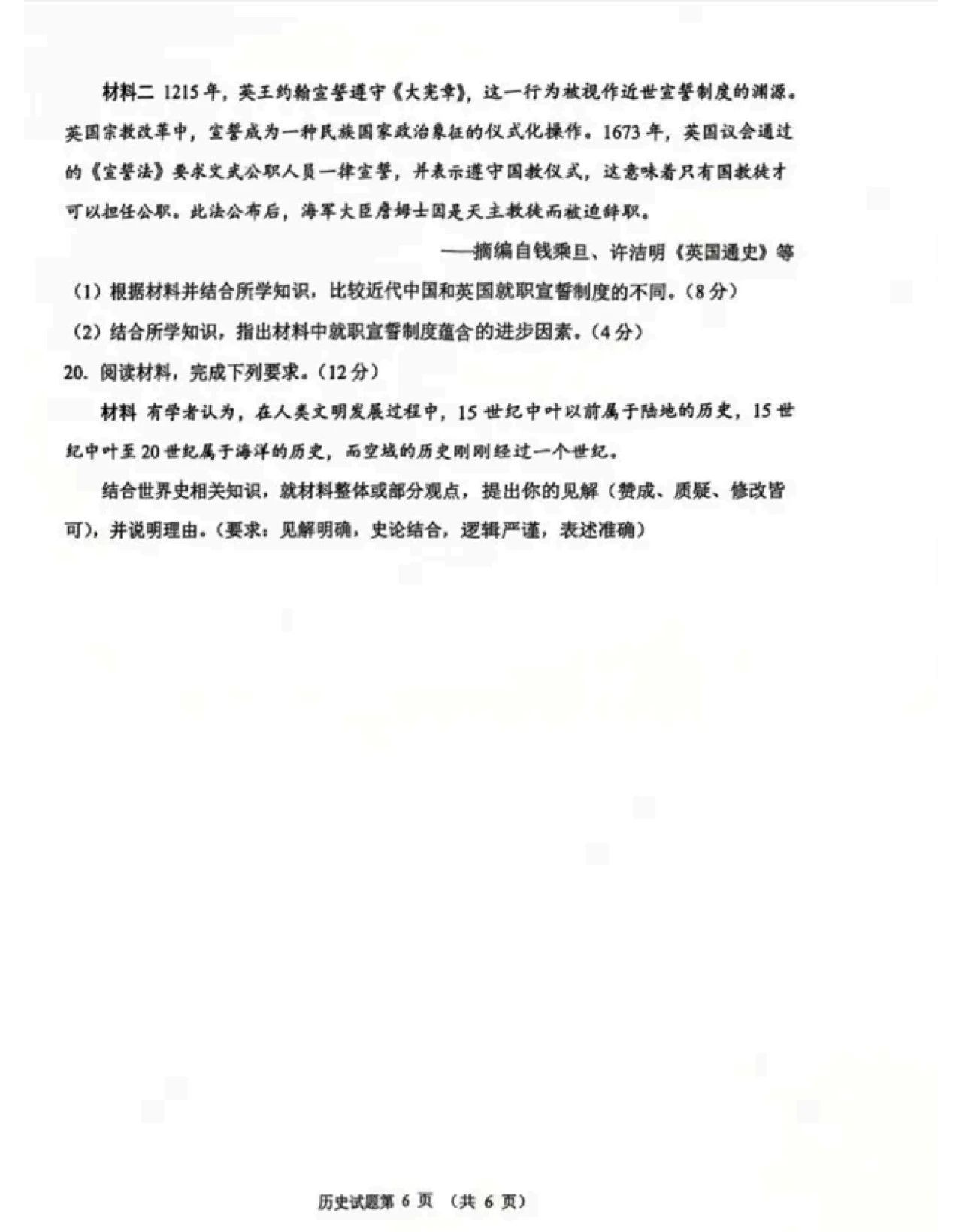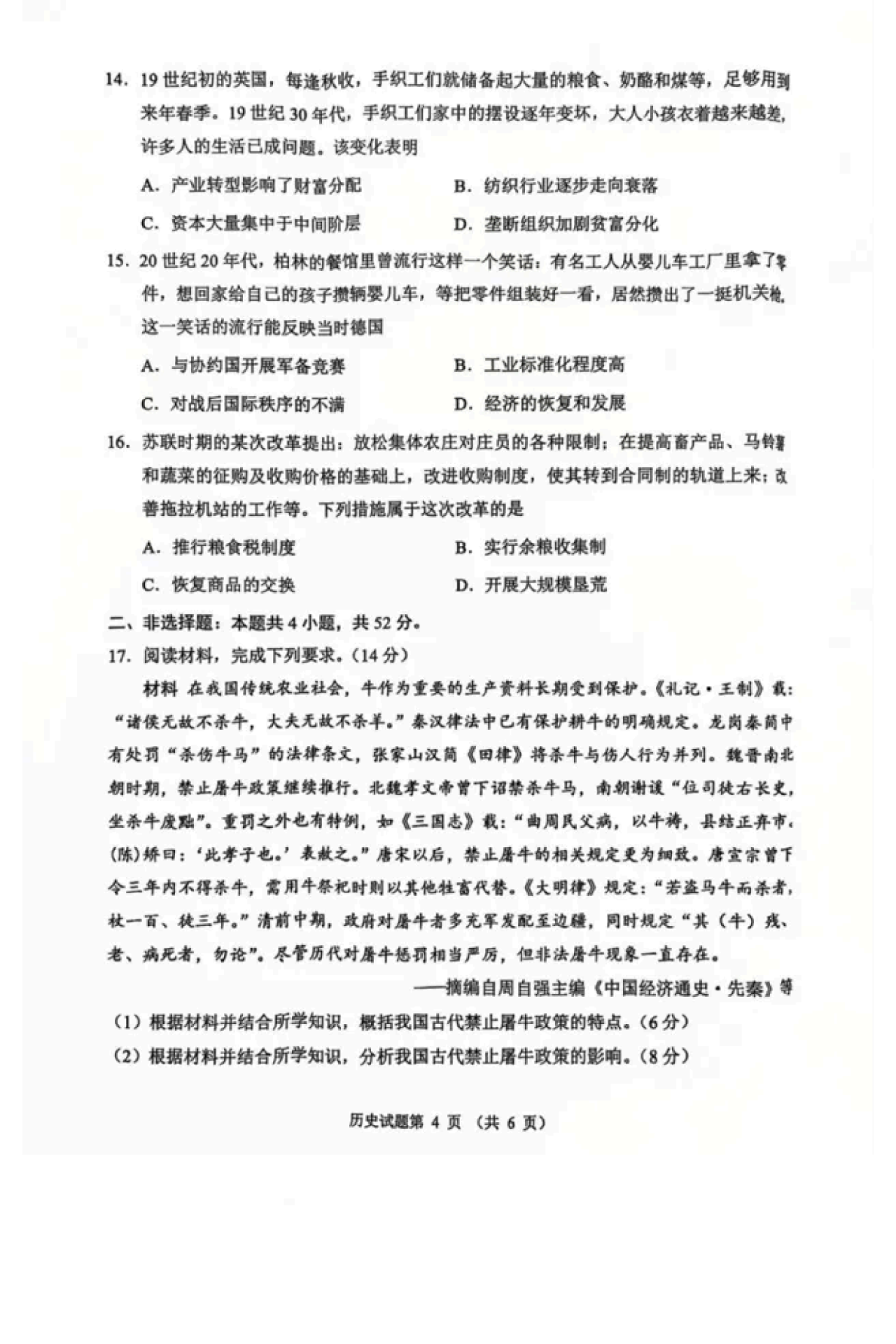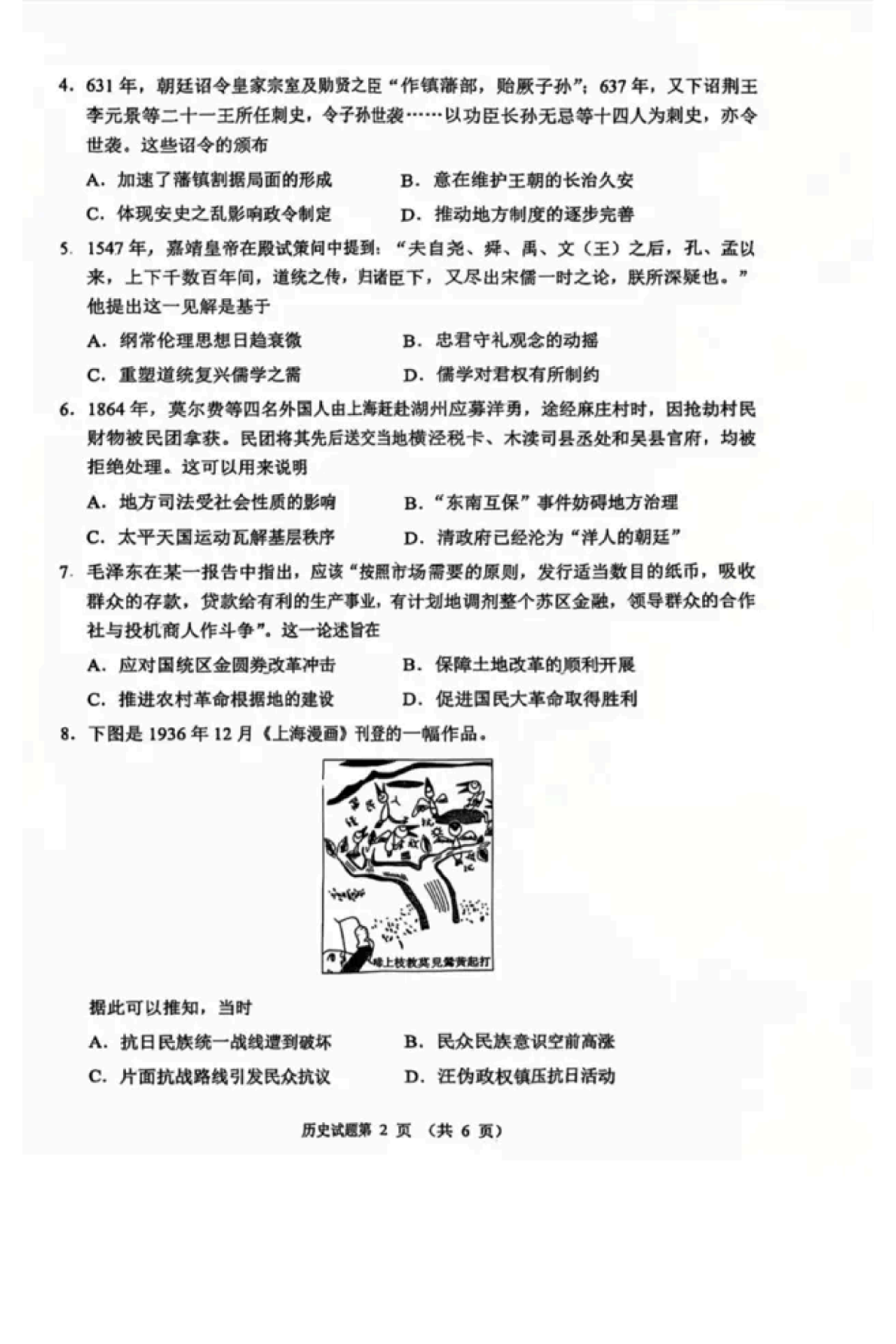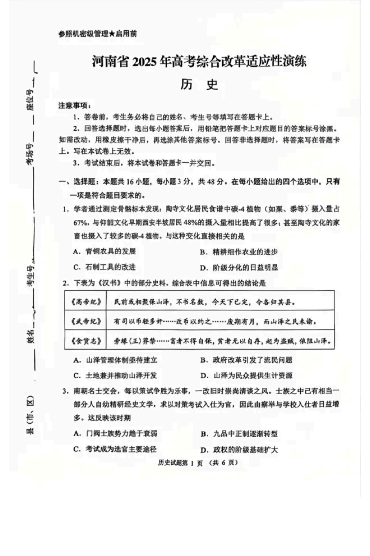 河南省2025年高考综合改革适应性演练历史试题及答案