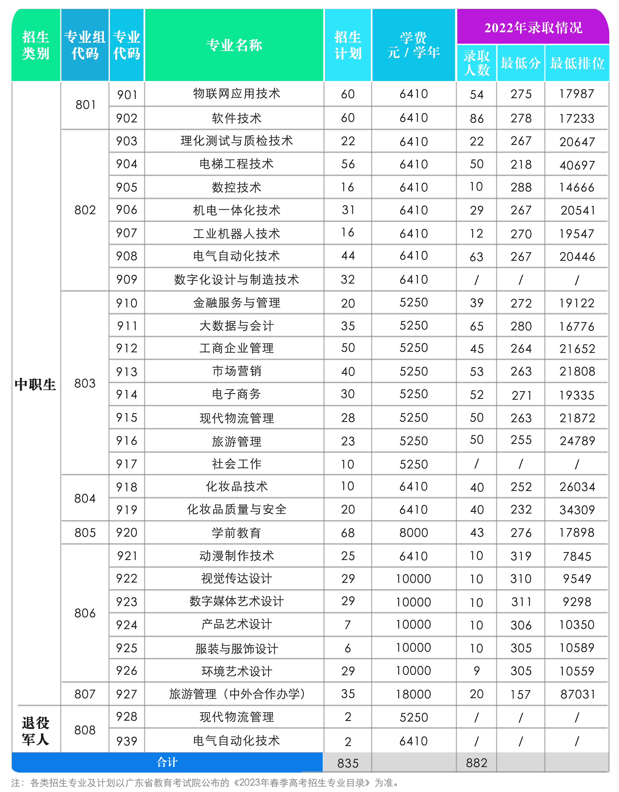 中山职业技术学院2023年开展春季高考招生,招生类型包括招收普通高中毕业生的“依据学业水平成绩录取”招生和招收中职毕业生和退役士兵的“高职类3+证书(专科)”招生。春季高考招生总计划1355人。
