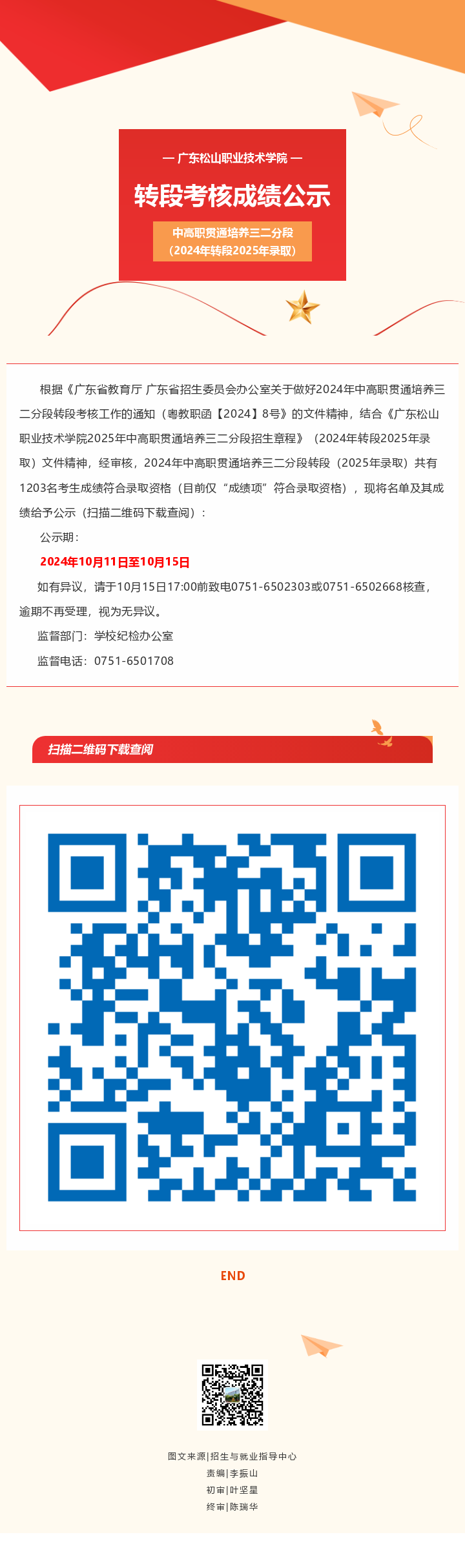 广东松山职业技术学院2024年中高职贯通培养三二分段转段考核成绩公示(2024年转段2025年录取)