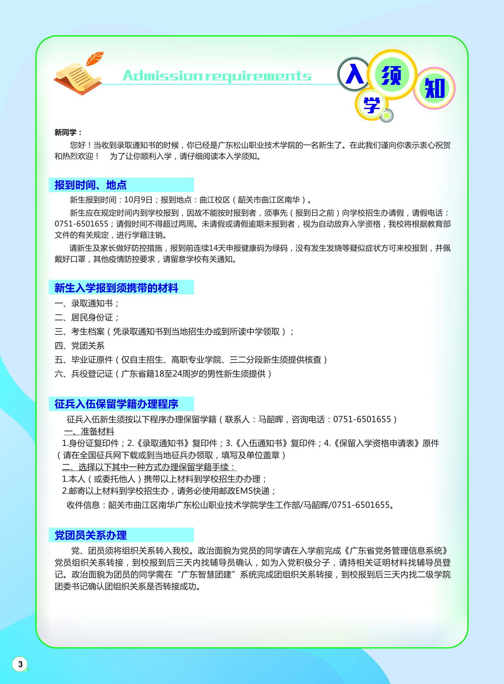 广东松山职业技术学院2021年新生入学指南(校本部新生)