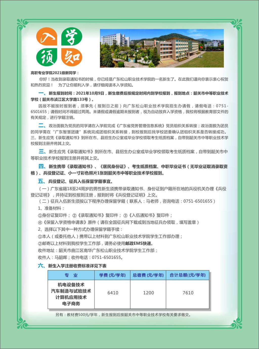 广东松山职业技术学院2021年新生入学指南(高职专业学院新生)