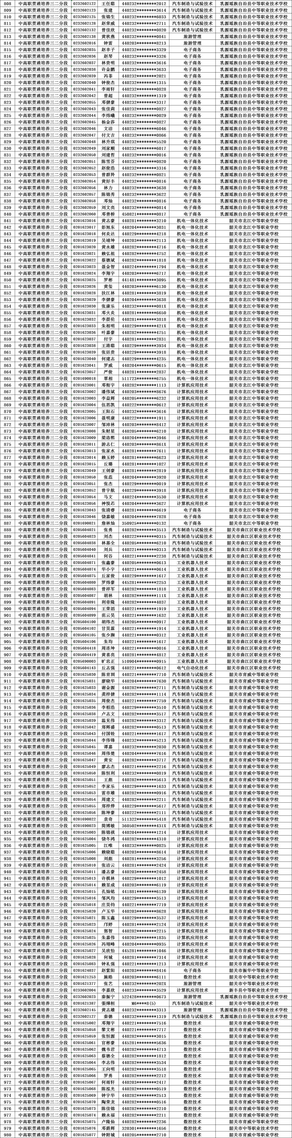 根据《关于做好2024年职业院校中高职贯通三二分段高考报名及录取审核工作的通知(粤招办普【2023】38号)》的文件要求,结合《广东松山职业技术学院2024年中高职贯通三二分段招生章程》(2023年转段、2024年录取)文件精神,经广东省教育考试院审核,现将1028名录取考生名单给予公示: