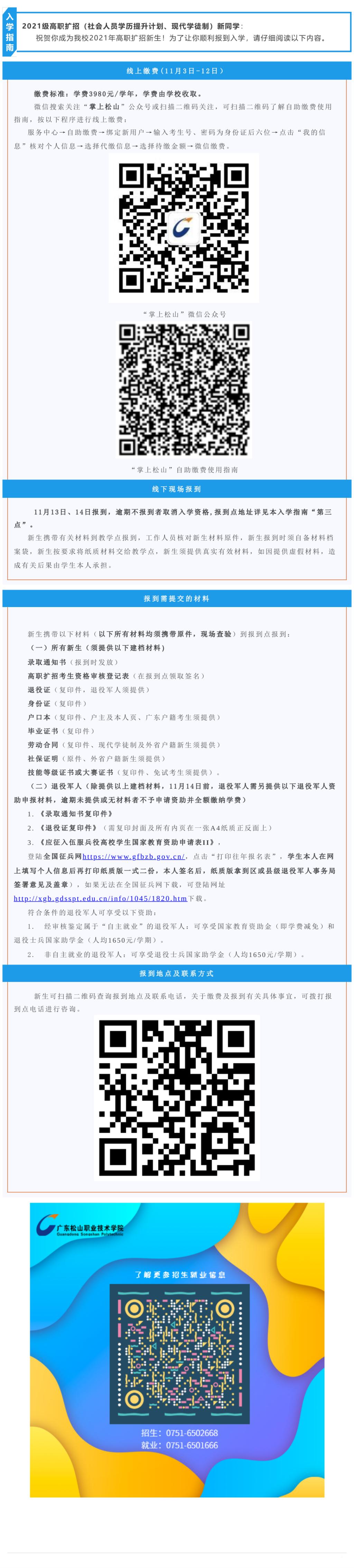 广东松山职业技术学院2021年高职扩招新生入学指南