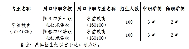 第十五条 学校执行广东省教育厅、广东省招生委员会下达的中高职贯通培养三二分段转段考核招生计划。三二分段招生专业为学前教育专业,招生计划200人。