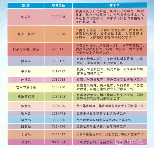 各系、部门联系方式和工作职责