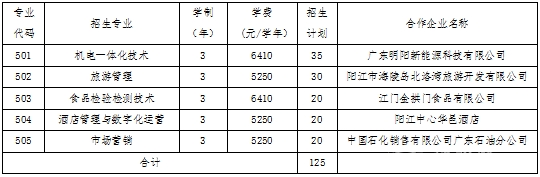 阳江职业技术学院2021年高职扩招专项行动招生简章