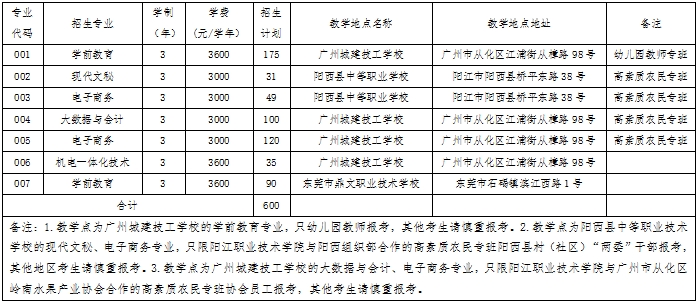 (四)教学地点:1.社会人员学历提升班的教学点为广州城建技工学校、东莞市鼎文职业技术学校和阳西县中等职业学校;2.现代学徒制试点班的教学点为阳江职业技术学院及相关合作企业。