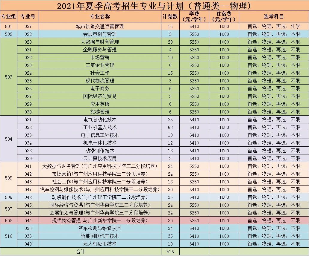 广东省2021年夏季高考招生专业、计划数及选考科目要求