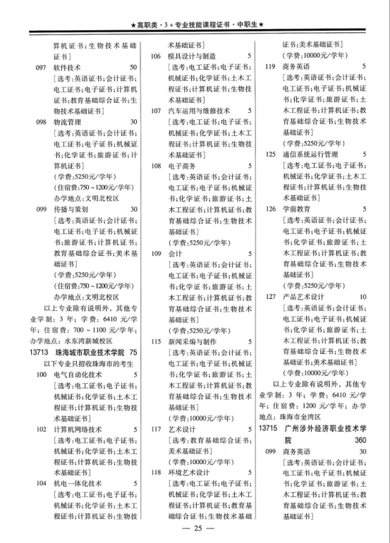 2017年3+证书招生计划一览表